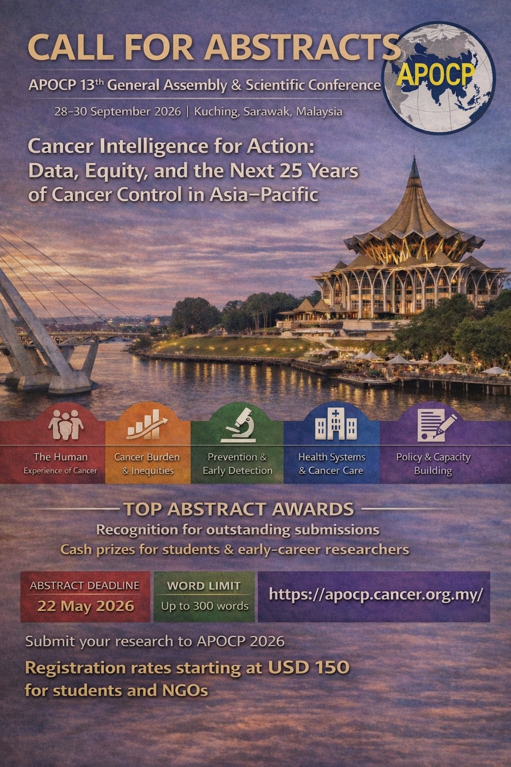 Join the Forefront of Cancer Control at the APOCP 2026 Conference in Kuching, Malaysia. Mark your calendars for a pivotal gathering in global health. The Asian Pacific Organization for Cancer Prevention (APOCP) will host its 13th General Assembly & Scientific Conference from September 28 to 30, 2026, at The Waterfront Hotel in the beautiful city of Kuching, Sarawak, Malaysia.